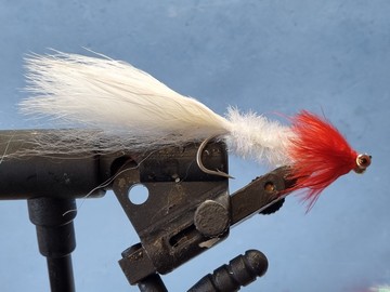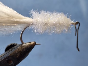 The articulated shank needs a colar of palmer chenille to camofague the join between the trailing hook and the articulated shank, weight at the front of the trailing hook to make it swim head down and a little volume behind the hackle to create some cavitations around to keep the marabou in the tail working.