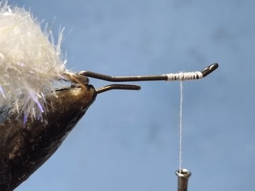 - Trim the excess butt ends of the marabou and then cover the but ends with afirm wraps of thread.