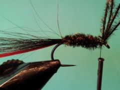 1. Wind the herl rope forward to the 90% position creating a uniform cigar shaped body.