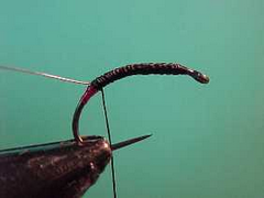 - Wind thread the 95% position back along the hook and part way round the bend.