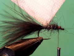 - Stroke the front hackle back with the fingers of your left hand and build up a neat but oversized grall thread head directly behind the eye of the hook.