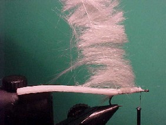 One of the things we try to do when we fly fish is “match the hatch” in form and function. Well if you put a burley trail of bread out have a look at a bits of bread floating around they really doesn’t have any one single form – there just bits of bread. They do however have function in that they float in the water rather than on the water and they are off white rather than pure white. This fly matches the form of a piece of bread floating and has the added advantage of being highly visible so it can be used as an indicator if for example you want to fish a second weighted fly below.
