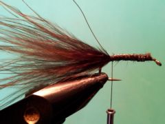 This fly is tied much the same as a standard woolly bugger except that it’s a little thinner in its profile and a little longer in the tail.