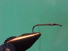 3. Tie in a length of copper wire along the top of the hook shank to the bend of the hook.