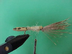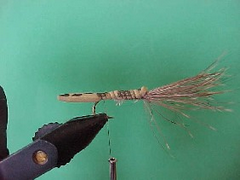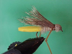 | Size 10 – 12 Tiemco 3769 | Brown | Natural colored deer Hair | 2 mm closed cell foam | Dubbing to match tail | Rubber or silicon legs |