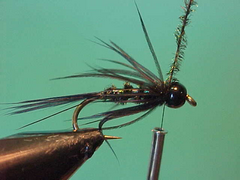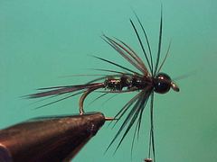 This is a hybrid of a spider fly and a bead head nymph with a tungsten bead up front  and are particularly useful in situations where I need a bit of weight to get a fly down yet still want the anchor fly to fish well and be enticing to trout rather than just being an anchor for other flies in the team. Hybrid spider nymphs are good buggy looking flies and the tail and soft hackle provide plenty of movement. One of these hybrid spider nymphs on the top dropper and two unweighted spiders or nymphs below can be a real tease for trout.