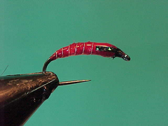 When fish are taking Chironomids the Chironomids are generally available in large numbers. The Lava is between 6 & 15 mm in length and is generally a blood red legless maggot. In the laval form they live in the detritus sediment in the bottom of lakes and streams.