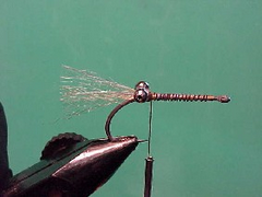 - If extra weight is required wind a little lead wire along the middle section of the hook shank. This fly fishes best on or around the bottom but care should be taken not to add so much weight that it becomes difficult to cast.