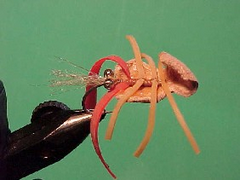 - The legs can be tied out of silicon or rubber leg material or out of a sections of rubber band. I prefer to use rubber band for the legs on the combo crab because they have a natural curve.
