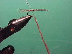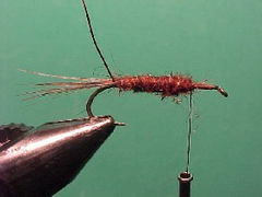 - Once the dubbing is attached to the thread wind the dubbed thread along the hook shank to form the body.