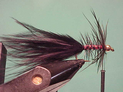 The ‘Fiona’ (Shrek’s lady) as I have called this fly is a counter balance for the increasingly popular fly called a Shrek. It is in fact the same tie as the Shrek except that it incorporates different coloured materials. Both are basically Woolly Buggers by design and just as the emerald green is a great option in the Shrek the red works well in combination with the black dressing of the Fiona.