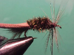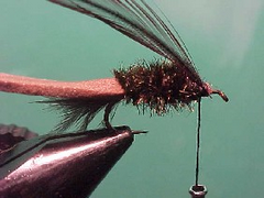 - Tie a hackle in at the front of the body.
