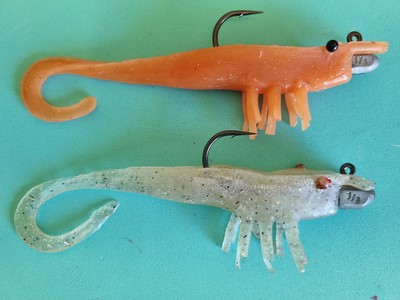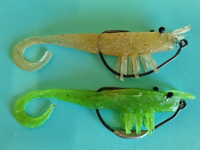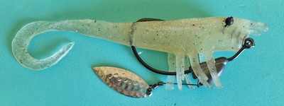 This is a hybrid of two very different types of lures … a prawn imitation and a grub tail soft plastic.