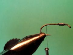 - Wind the thread in touching turns half way down the bend of the hook. If you don’t add any weight you may find that the fly hangs in the meniscus which of course isn’t a good look for a sinking fly. Alternatively if you add too much weight the fly sinks like a brick which doesn’t look very natural and of course it may be more prone to getting snagged. On a size #8 hook I like to add just 7 wraps of 0.10 mm lead wire to ensure it breaks the meniscus and sinks only at a fairly natural rate.