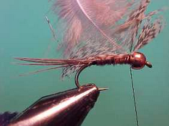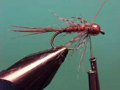 This is more a class of flies rather than just one fly and is a hybrid of a spider fly and a bead head nymph with a tungsten bead up front. I carry 4 different hybrid spider nymphs in two sizes and find them particularly useful in situations where I need a bit of weight to get a fly down yet still want the anchor fly to fish well and be enticing to trout rather than just being an anchor for other flies in the team. Hybrid spider nymphs are good buggy looking flies and the tail and soft hackle provide plenty of movement. One of these spider nymphs on the top dropper and two unweighted spiders or nymphs below can be a real tease for trout.