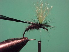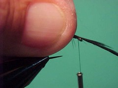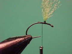 2. Using the single strand dubbing technique dub a cigar shaped body all the way up to the post.