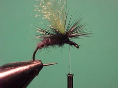 1. Dub a thorax of peacock dubbing material between the post and the eye of the hook.