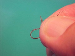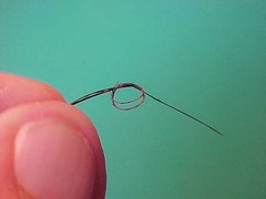 - I then use my left hand to manipulate the but end/s of the one or more barbules through the loop.