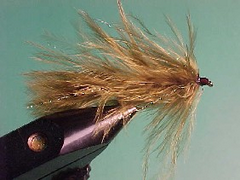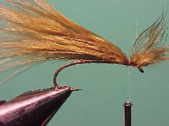 2. Tie a clump of marabou in on top of the hook shank with the tips extending over the top of the hook and behind the hook a distance equal to the length of the hook shank.