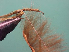 1. Take the thread back down to the bend of the hook binding the marabou to the shank of the hook as you go.