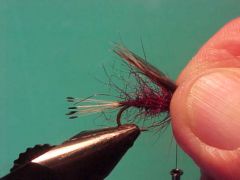 - Take 3 of four turns of the hackle directly in front of the body.