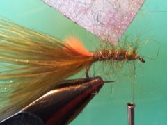 The MK 2 woolly buggers evolved from standard black and olive woolly buggers as a fly that would imitate an American frog that had bright red between its hind legs and consequently the red tag is traditionally tied in below the tail. In Australia this tie is a little more popular than the original tie these days and its main point of difference is that the tag tied in on top.