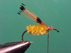 From what I can understand Dan Popovics conceived the original Nobby Hopper. It has undergone a number of changes since it was designed including the change of the body to yellow chenille by Noel Jetson when he developed the Noels Nobby. Whilst I don’t think either the Original or any of the variants represents any of the naturals that I’ve seen it is a good buggy general purpose hopper pattern. If you experiment with bodies of different coloured chenille, yarns and tinsel matched with different coloured deer hair you can come up with combinations to suit most small hoppers.