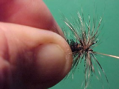 - Tie a hackle in directly in front of the body of the fly.
