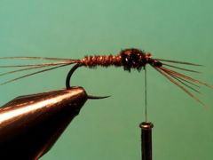 - Stroke the tips of the pheasant tail herl backward under the fly to represent the legs of the nymph.