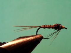 I have varied the pattern a little to take into account the shorter herl on pheasant tails that dominate the market these days and to include the substitution of peacock herl in the thorax and the addition of legs. Pheasant tails vary in colour in their natural form from olives through to browns and there are also died versions available. I tie olive, brown and claret versions of this fly in a couple of sizes. These pheasant tail variants make up around 20% of the content of my nymph fly box and account for probably 50% of the trout I catch on nymphs.