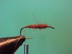 Body: Tied as you would a nymph, with brown or greyish possum fur, dubbed so that it has a relatively loose and scraggly appearance. Peter ties his with a bright flouro head, so as to help it stand out in the crowd, so to speak! Please yourself if you wish to tie in a rib, a copper one is probably best.