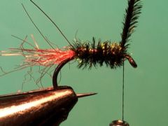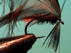 - Tie in several strands of peacock herl.