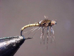 This fly is designed to be fished on the drop and then on the rise. It was originally designed to imitate the action of lake Jindabyne olive midges as they hatched but it has proven useful in other fisheries.