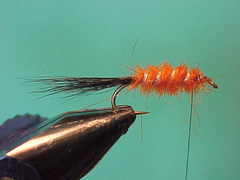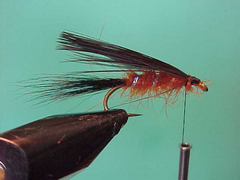 A New Zealand fly tied with an overlaid wing and tied as an evening fly to imitate their freshwater crayfish known as Koura. The preferred fishing technique in New Zealand is to fish it slowly along the bottom. It certainly works well when fished that way in Australia but it has also found its way into may Australian Loch fly boxes as a dropper fly for waters where orange is a good trigger colour and mudeyes or yabbies are on the move.