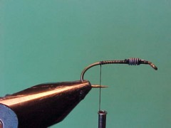 - Tie in a length of wire at the bend of the hook.