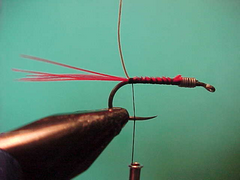 - Wind 6 or 7wraps of 0.015 lead wire toward the front of the hook to ensure that the fly does not float.