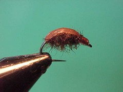 Snails are a food source for trout throughout the year. Having said that they are often overlooked by fly fishers. In colours imitating the naturals in the area to be fished they can be slowly twitched along the bottom or the weed beds with great results. They are also a good ambush fly for trout foraging the margins. My standard choice of colours is a mottled brown and olive dubbed body and a dark olive “scud back” shell.