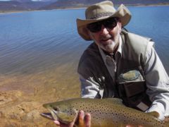 Lake Eucumbene is a brown trout and Rainbow trout fishery. Brown trout are recruited from natural spawning in the Eucumbene River ans several other smaller streams that run into Lake Eucumbene and whilst there is natural recruitment of Rainbows first from a strain of early spawning rainbows at about the same time as the browns there is a larger recruitment from later spawning rainbows from September into October. On top of that there are around 150,000 fingerlings released into the lake each year. Most of us that fish Eucumbene regularly would be at odds with NSW Fisheries in our claims that Lake Eucumbene is diminishing as a brown trout fishery and that Rainbows are becoming increasingly dominant. Fish sizes vary with some very large fish being caught but the average size for Rainbows is around 14′ to 18″ and for browns just a little larger.