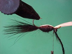 - Turn the hook right way up in the vice and tie in a length of mohair at the bend of the hook.