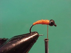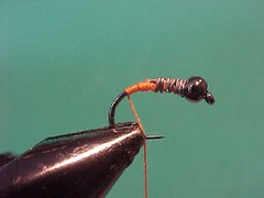 - Wind the thread forward in touching turns to behind the bead head.
