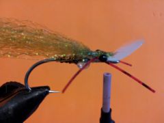 - Tie in two strands of Krystal Flash on top of this first 1/3 of the wing.