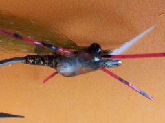 - Tie in a set of legs on each side of the fly “Chernobyl” style in the gap between the bead and the eyes.