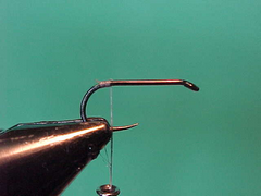 - Tie the thread in at the bend of the hook.