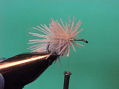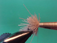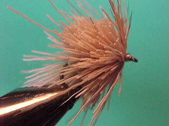 - Stroke the front deer hair back with your fingers and build up a neat thread head.