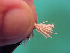 - Its also useful to take two tight turns of thread in front of each bunch of deer hair after it has been pressed back.
