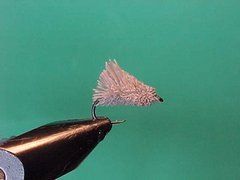 This is just the simplest imitation of a snow flake caddis laying on the surface of the water. The shape and size are right for any of the small caddis and and it floats well.