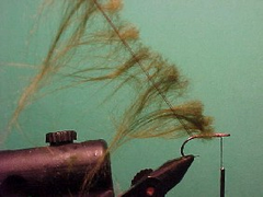 - Load the dubbing hook up with long strands of polar fibre.