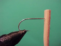 - Pierce the foam with the point of the hook along the center line and a distance equal to about the gape of the hook from one end and push the foam along to the eye of the hook.