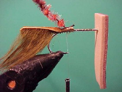 - Pull the closed cell foam back along the top of the fly and tie it down firmly at the bend of the hook.