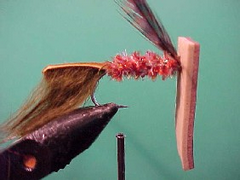 - I have tied in a length of brown sparkle chenille for this fly but you can use most fly body materials.